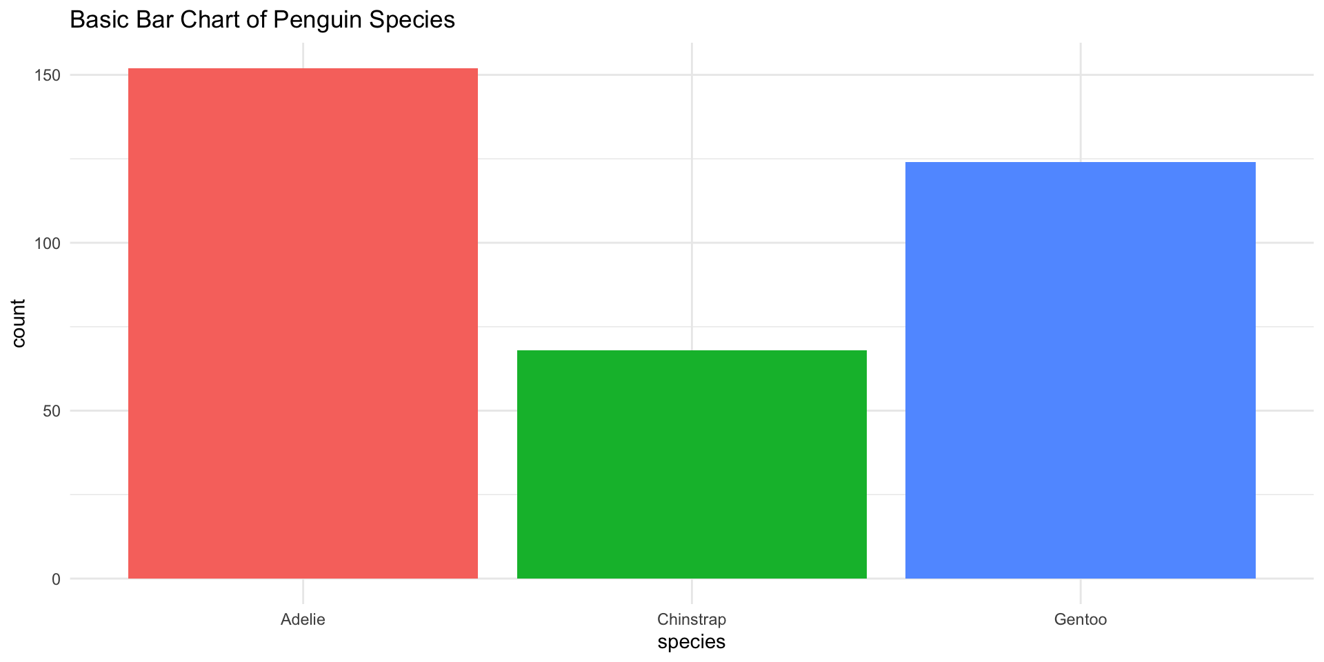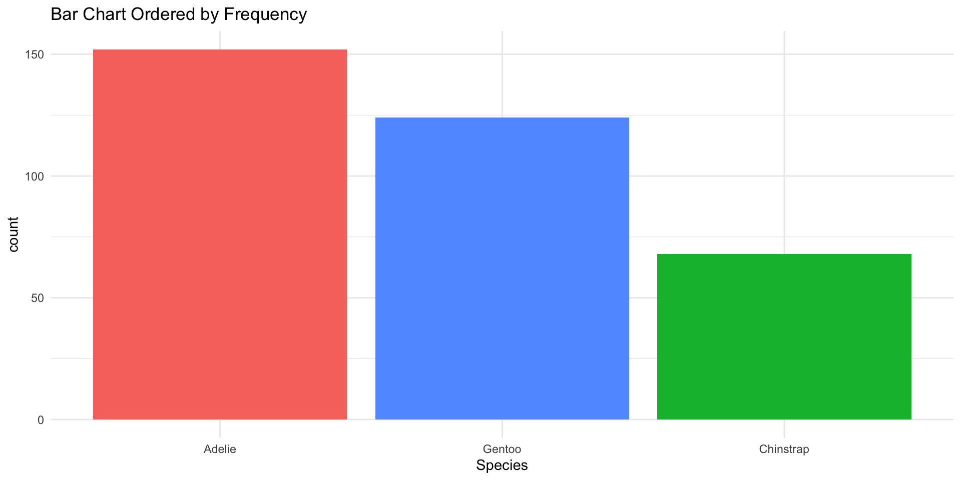 ggplot(penguins, aes(x = fct_rev(fct_infreq(species)), fill = species)) +