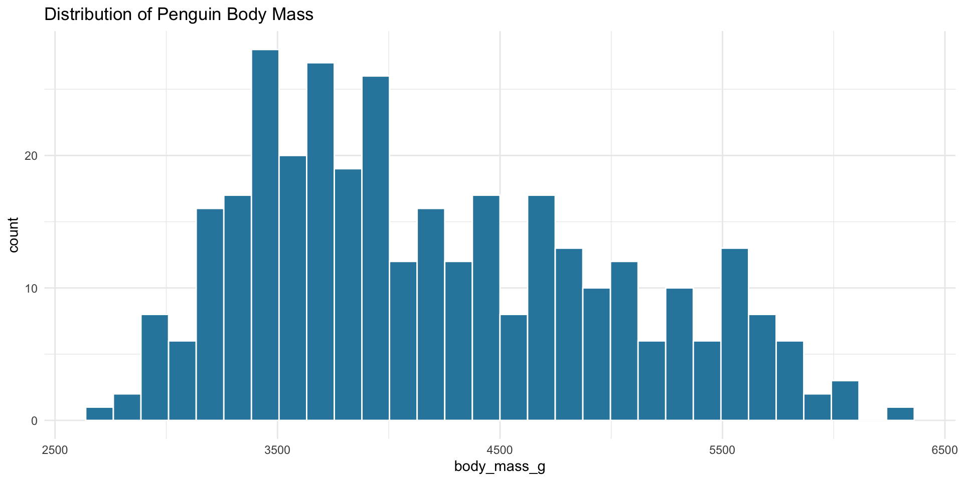 theme_minimal()Histograms are the standard way to view the distribution of a single numerical variable. They show “bins” of data to reveal the underlying frequency.