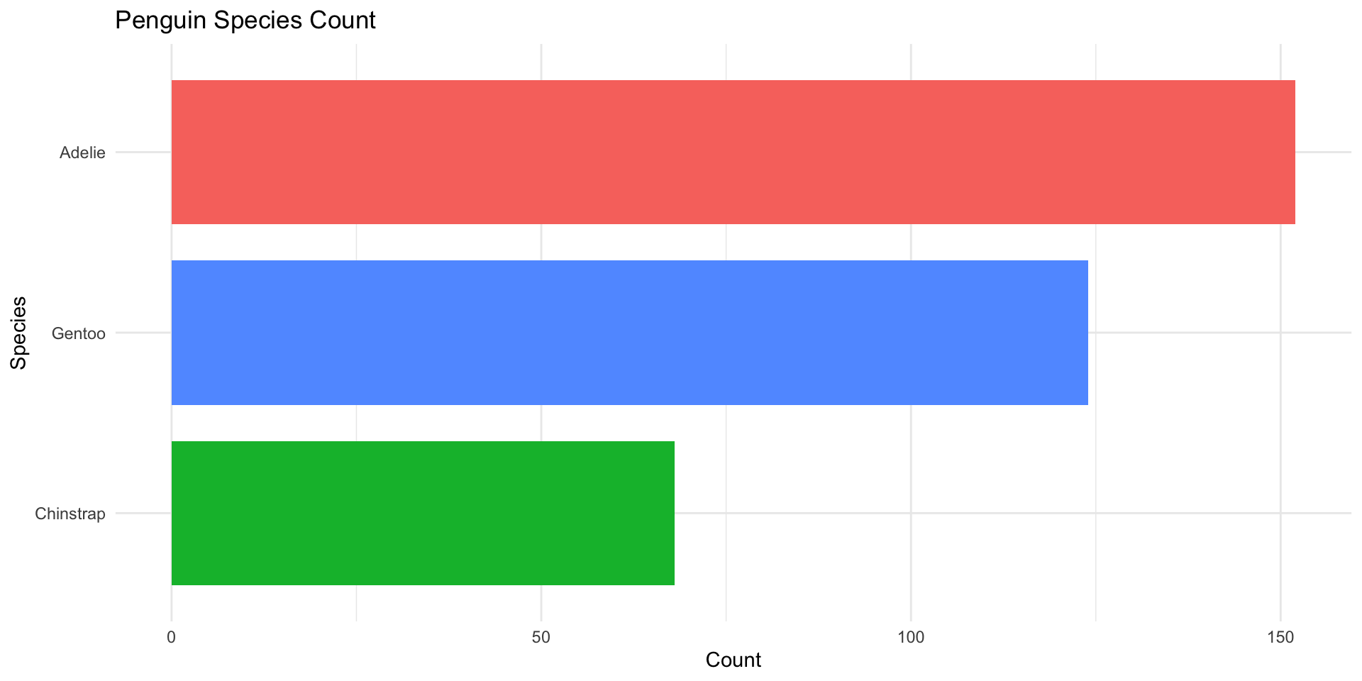 # Horizontal bar chart of penguin species with count labels