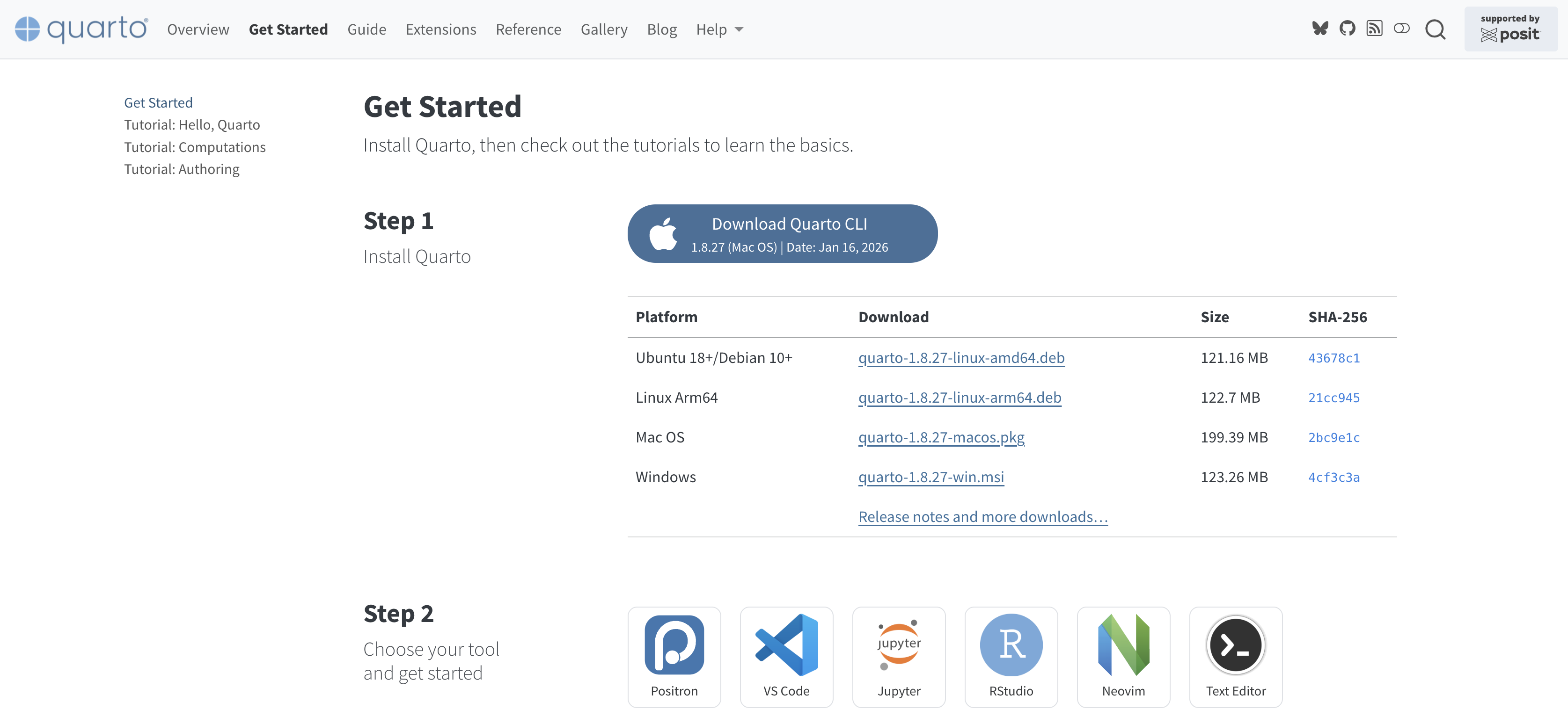 - Item 1- Item 2File -> New File -> Quarto Document.Code